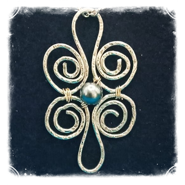 Quatre arabesques pour entourer cette jolie perle d'un gris irisé