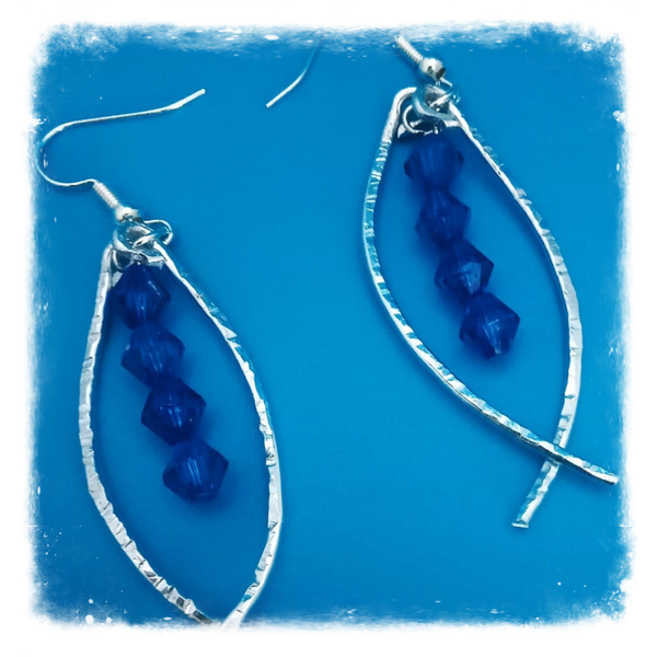 Charmant ces quatre perles crital bleu soutenu entourées de fil martelé