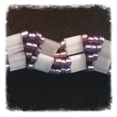 Perles carrées blanches tissées en chevron avex des petites perles parme