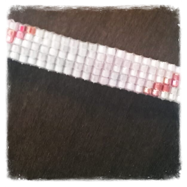Du rose très pâle, un peu de grenat et un fermoir argent pour ce tissage sur cinq rangs
