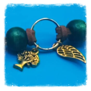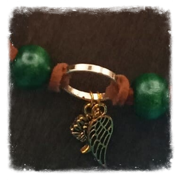 Ce bracelet de breloques dorées et de perles de bois peut se porter au masculin comme au féminin