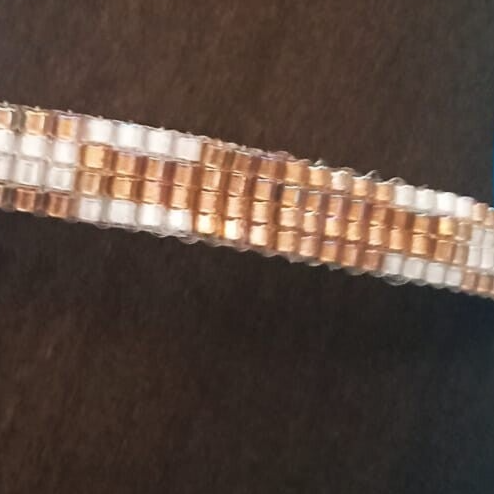 perles blanches et dorées pour un tissage sur quatre rangs. Femoir doré